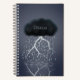 A whimsical dark thunder cloud spews rain and lightning illuminating a pool of rippling water. Customise the cloud with a name or title for your notebook.