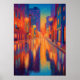 Colorful pointillist painting of a glowing city street after rain. Thousands of vibrant dots create a luminous neo-impressionist urban scene filled with warm street lights and shimmering reflections.