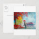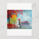 RAINY DAY RED UMBRELLA ROMANTIC COUPLE POSTCARD