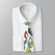 This necktie has a mid-century modern design of raindrops with holes in retro colours repeated across the design on a field of white.