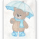 Watercolor cute little Teddy Bear in the rain wearing blue rainboots with a blue umbrella