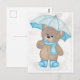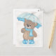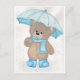 Watercolor cute little Teddy Bear in the rain wearing blue rainboots with a blue umbrella