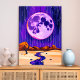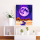 This surreal landscape wall art captures the beauty of a glowing full moon against a purple night sky with gentle rain falling over vast desert hills. A winding river flows through the scene, adding a reflective shimmer to the dreamlike composition. The mix of deep purples, soft blues, and earthy tones creates a mysterious yet calming atmosphere, making this piece a striking focal point for living rooms, bedrooms, or creative spaces.