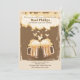 A beer theme invitation with old-time charm. It features two mugs of frothy beer against a brown and tan grunge background. Perfect for birthday celebrations, bachelor parties, promotion celebrations, going away parties and more.