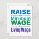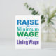 Raise the Minimum Wage to a Living Wage activist message on a colourful postcard. Images are copyrighted © Sandy Long, all rights reserved. This design is on many other fun items in my Art Activism store. Send a message to your Senators and Representative and tell them we deserve a living wage. Productivity keeps going up but the rich keep all the profits. We should get a bigger share.