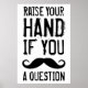 Funny design reminding students to raise their hand if they have a question. Raise your hand if you moustache - must ask a question.