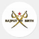 Phrase, “Rajput By Birth,” with two crossing Indian war swords, highlighted by a centred red star in the background.