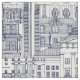Illustrated Raleigh North Carolina toile, originally drawn in ink. Basic repeat pattern.