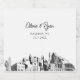 Modern Raleigh skyline personalised champagne label. The design showcases a stunning sketch with the ability to customise your names and exact location. Enter the Zazzle design tool for additional customisations.