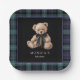 Ralph Teddy Bear Navy Green Plaid Baby Shower Paper Plate