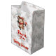 This white gift bag is special because it features a subtle, faint repeating ram pattern, allowing the full-color central ram graphic and the personalized "Thank You" message to pop. This light, coordinated design offers an elegant and whimsical alternative to the dark-patterned version, perfect for favors at a winter baby shower.