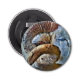 Very cute and compact little bottle opener. Also very fond of the magnet, both for sticking to the fridge and holding on to the bottle cap when trying to open it. Good quality print. As pictured.