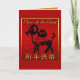 Black lucky Goat into a gold frame with red silk (digital effect) tapestry as background and gold lettering YEAR OF THE GOAT and greeting in Chines "Happy New Year" + red background. Design on Greeting card. You can easily add and change background colour (inside the card) by clicking the customise button. Matching postcard, invitation, craft products, home products, clothing and more... Perfect for Chinese New Year of the Goat.-------------- The Goat (Chinese: 羊; pinyin: yáng) is the eighth sign of the 12-year cycle of animals that appear in the Chinese zodiac related to the Chinese calendar. The sign is also referred to as the Ram or Sheep sign, since the Chinese word yáng is more accurately translated as Caprinae, a taxonomic subfamily which includes both sheep and goats. (...) People born within these date ranges can be said to have been born in the "Year of the Goat", while also bearing the following elemental sign: