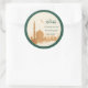 Share a warm Ramadan greeting with this elegant round sticker featuring “Ramadan Kareem” in Arabic, paired with the message “Wishing you all the blessings of this month.” The design blends a gold watercolor masjid silhouette and crescent moon with a rich green geometric border—perfect for sealing gift bags, treat boxes, envelopes, party favors, and Ramadan/Eid packaging with a beautiful, meaningful finish.