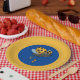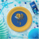 Golden ladybug for Ramadan with fanous, crescent moon, and star.