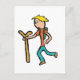 Rambling or hiking image shows a keen walker making rapid progress with stick or crook, and backpack. Fun design for ramblers and hiking enthusiasts.