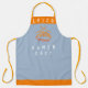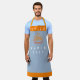 All-over print apron in light grayish-blue and orange .It features a simple graphic bowl with noodles and chopsticks . The upper orange border has a name - you can personalise it now .National Noodle Day is on October 6 in the US but it is a great wear on any day of the year .