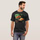 I give wanted to give this a 4 instead of a 5 because these Basic DARK T0shirts run unexpectedly SLIM or Narrow. Which is great if you do not have a potbelly, but I have a paunch. It isn't the shirt's fault that I've got a beer belly. The design and shirt itself is a quality cotton shirt. The color is more of a deep purple, but still a very pretty color. The Basic DARK T-shirts run a bit SLIMMER than the Basic Ts. The neck is a fraction narrower (or seems to be narrower) also. I'm a paunchy middle-aged woman and my neck is 12 inches (31cm) thick and the neckline fell about the same as in the photo of the man, and I had the desire to tug it a bit. So if you're a thick necked man or like loose shirts, be aware these are slimmer shirts. Once I get rid of my lockdown paunch it'll look great. The shirt washed well in cold water with no apparent bleeding. We don't have a dryer, so it hung dry. Did not shrink. Love the colors and the design. The design looks smaller on my shirt than it does on the model on-line. But still, it looks good on the shirt. The printing looks as it does on the model, just the size seems fractionally smaller. Washed garment in cold water, hung dry and design appeared unaffected.