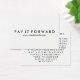 Double sided black and white Pay It Forward card in celebration of Random Acts of Kindness day and the 365 day a year movement. Back side of card lists simple ideas of ways we can all share kindness throughout our day. Each line of text is customisable, if you have your own ideas you can change every line of the list.