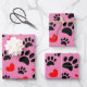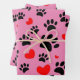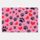 Random Cartoon Dog Paw Prints And Red Hearts Wrapping Paper Sheet