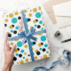 Random Circles Pattern Black Blue & Gold Glitter Wrapping Paper