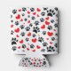 Random Dog Paw Prints And Red Hearts Can Cooler