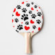 Random Dog Paw Prints And Red Hearts Ping Pong Paddle