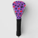 Custom purple golf head covers.
