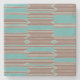 A rustic, western, mosaic design created from stripes in shades of brown that have been tiled, randomly shifted, and placed on a blue background. This digital image is customisable, including the background colour and the direction of the stripes.