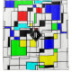 Geometric shapes inspired by the work of Piet Mondrian. Irregular lines forming squares and rectangles. Decorative retro style digital art.