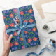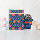Rangoli Flowers, Polka Dots on Blue Wrapping Paper