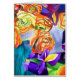 An original watercolour painting design of colourful yellow and orange ranunculus Spring flowers and purple iris flowers. This colourful and bright vivid floral design is from an original painting. Original and beautiful, this orange and purple botanic design would liven up any environment.