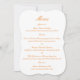 Elegant die-cut wedding menu cards for sophisticated summer garden receptions. Featuring a unique curved silhouette and warm sunset typography, this botanical-themed menu is perfect for the romantic fine-art bride. Its sculptural shape adds a luxury tactile element to your table setting without distracting from your floral decor. Styling Tips: Place atop a sage green charger plate or pair with a single dried ranunculus stem.