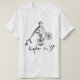 a raptor riding a bicycle. What makes it unique is the hilarious detail of the drawing - the raptor, with his small arms and long legs, is forced to make a wheeling to reach the handlebar of a two-story bike. And to top it all off, small wheels built into its tail allow it to maintain balance. The artwork, hand-crafted with black features in a scribbled style, brings a touch of authenticity and humor. Below the drawing, a slightly scrambled script displays 'raptor en y', a nod to the dinosaur's wheeling and a subtle reminder of the name of the MenYbike brand, which comes from 'Maryam en Y' and also evokes the idea of making a wheeling. This t-shirt perfectly embodies originality and offbeat creativity."