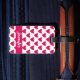 Do you like cute luggage tags? This luggage tag has a fun pink raspberry pattern and text you can personalise!