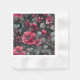 Raspberry, burgundy flowers on dark gray napkin