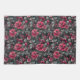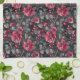 Raspberry, burgundy flowers with grey leaves on a dark grey background.
