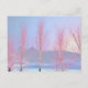 Digital painting of snow-covered birch trees; the snow tinged pink by the setting sun. Here in the north it is common to see snow covered trees tinged either pink or orange by the sun hanging low on the horizon.