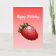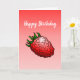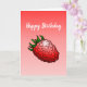 Delicious red raspberry on a folded Happy Birthday Card.