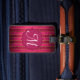 Raspberry Gold Stripe Modern Monogram Luggage Tag
