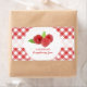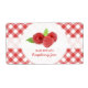 Customisable retro jar labels for homemade raspberry jam, jelly or preserves with fresh raspberries on red and white gingham tablecloth pattern.