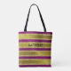 Raspberry Pink and Gold Glitter Stripes with Name Tote Bag
