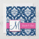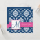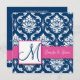 Raspberry Pink Navy Blue Damask Invitation