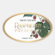 Vintage raspberry illustration with RASPBERRY PRESERVES written in a decorative metallic gold font. Metallic gold border.
