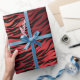 Raspberry Ruby Black Tiger Animal Red Metallic Wrapping Paper