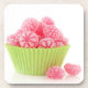 Raspberry tasty candy sweets in green cup cake coaster