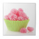 Raspberry tasty candy sweets in green cup cake tile