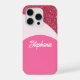Show off your sparkle with a custom phone case featuring a raspberry twist background with shades of pale pink, and hot pink glitter. Customise with your name for a unique design all your own!