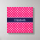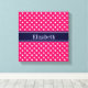 Raspberry White Polka Dots Navy Blue Name Monogram Canvas Print