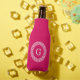 Raspberry Wht Greek Key Rnd Frame Initial Monogram Bottle Cooler